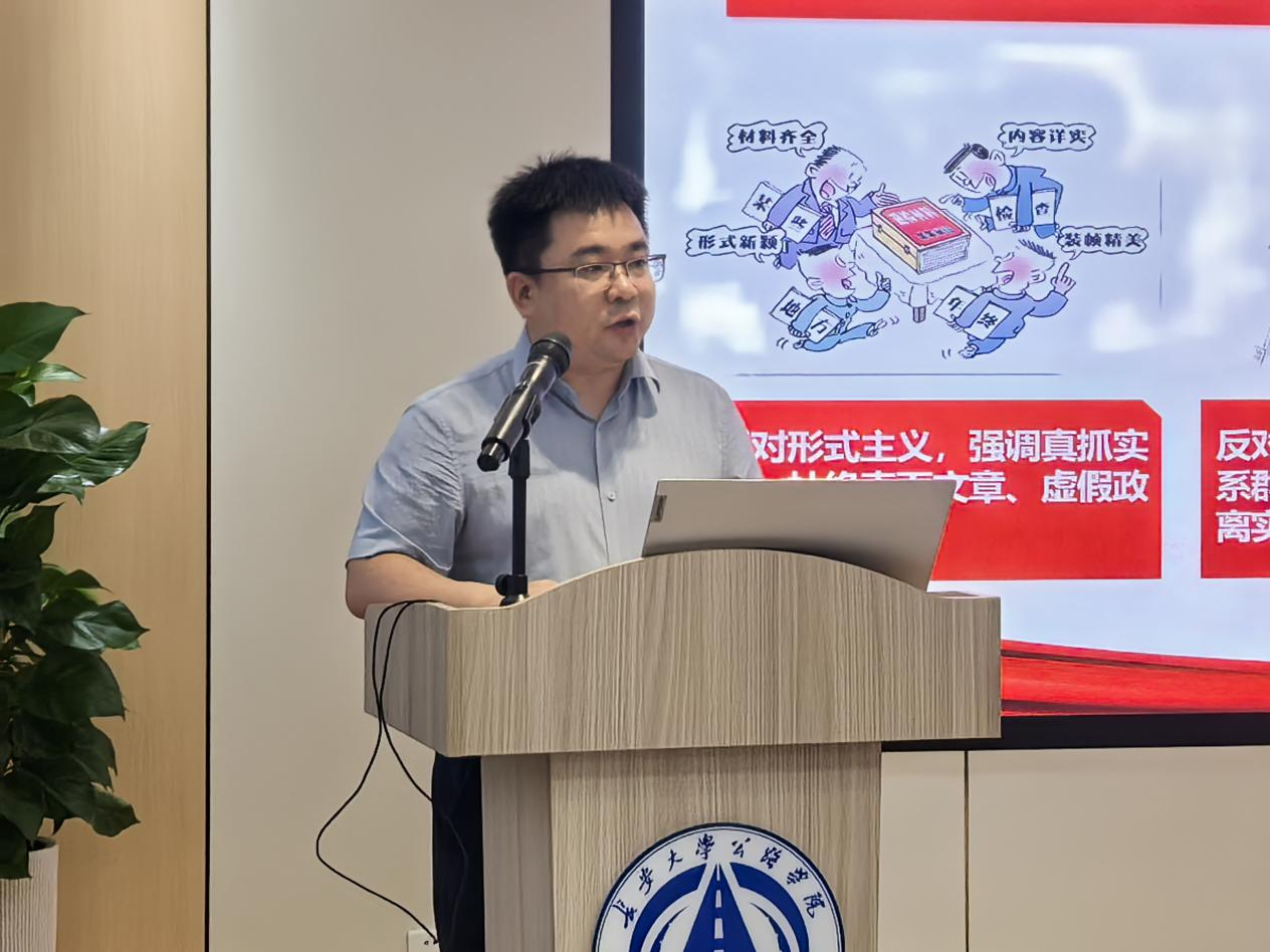 院党委书记张久鹏在总结讲话中强调,中央八项规定精神关乎党在人民群众心中的形象,关乎党的事业兴衰成败,财经纪律是学院正常运转的重要保障,廉洁从业是每位教职工应坚守的职业操守。全体教职工务必从反面案例中汲取深刻教训,引以为戒,切实增强纪律意识和规矩意识。一是要提高政治站位,充分认识到贯彻落实中央八项规定精神的重要性和长期性,坚决克服麻痹思想和侥幸心理;二是要严格自我约束,时刻保持清醒头脑,自觉抵制各种诱惑,做到心有所畏、言有所戒、行有所止,坚决杜绝违规违纪行为的发生;三是各系(中心)负责人和支部书记要加强教育管理和监督检查,及时发现和纠正存在的问题,确保中央八项规定精神、财经纪律和廉洁从业要求在全体教师中得到有效落实。