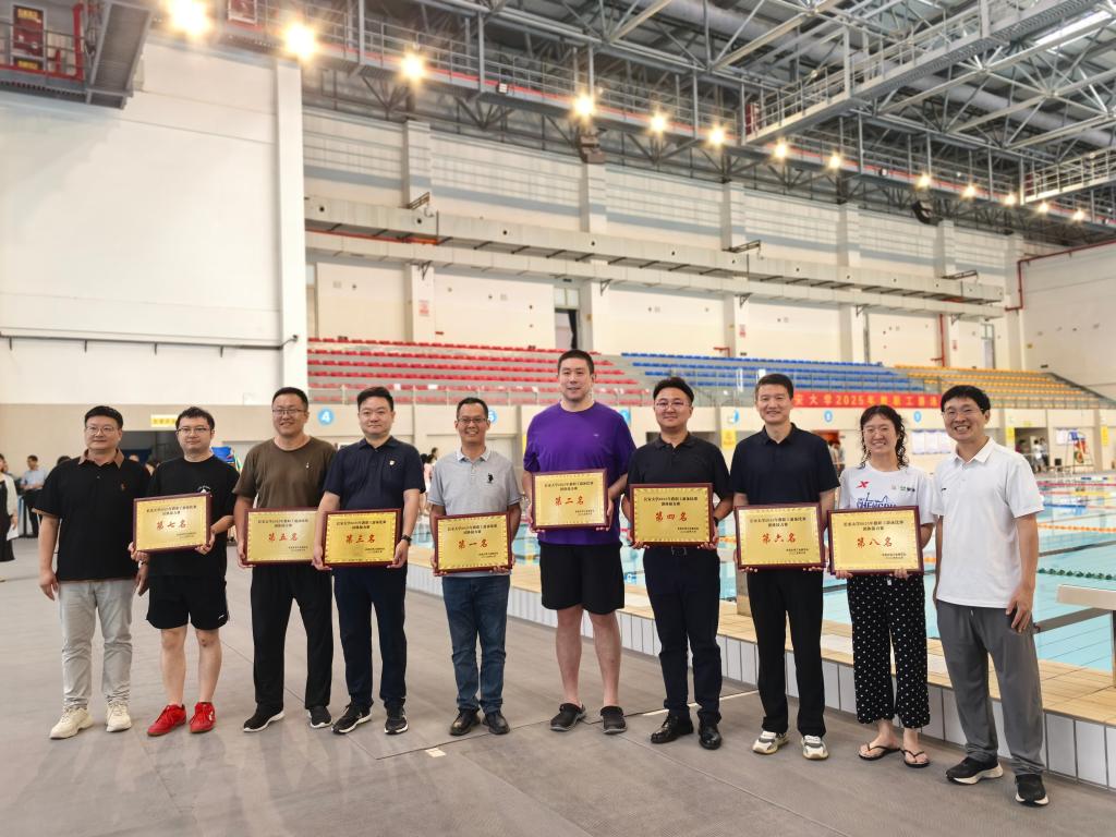 比赛当日,泳池内浪花翻涌,加油声此起彼伏。m88help center参赛教职工斗志昂扬,在水中劈波斩浪。在团体赛中,队员们默契配合、奋力冲刺,凭借出色发挥,从21支队伍中脱颖而出,一举夺得团体赛冠军,实现在此赛事中m88help center荣获“三连冠”的好成绩;男子个人赛中,赵瑞欣老师更是一马当先,以绝对优势率先触壁,将男子个人第一名收入囊中,这也是他实现“三连冠”的好成绩。这两项荣誉的取得,不仅充分验证了老师们的雄厚实力,更是m88help center团队凝聚力的生动体现。