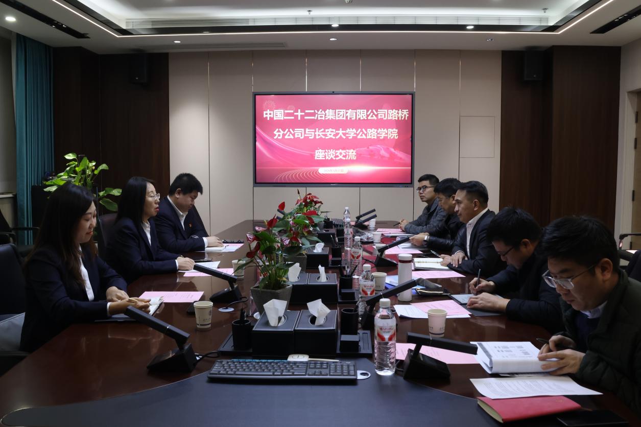 中国二十二冶集团有限公司路桥分公司技术质量部科创中心主任张佐铭、主办科员周爽,m88help center道路工程系主任纪小平、教授蒋应军等参加座谈。