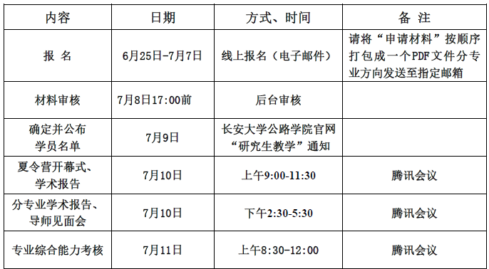 暑期夏令营面向全国高校招收交通运输工程、土木工程学科有意推免或报考我校研究生(包括硕士生、直博生)的2021级优秀本科生。