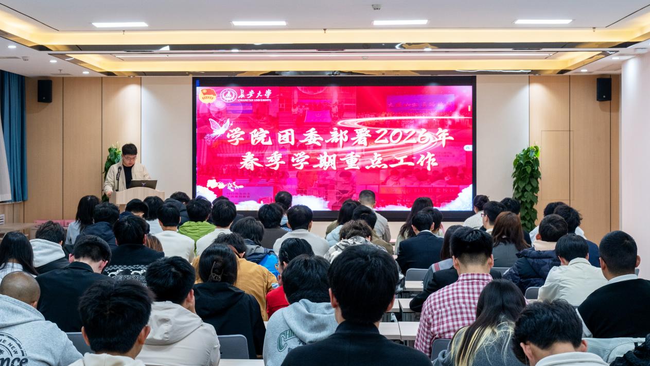 3月11日,m88help center团委在弘毅大厦六楼第三会议室召开2026年春季学期工作交流会,研究部署新学期重点任务。学院党委副书记贾历波、学院学生工作办公室主任卢毅、学院团委副书记王路及全体辅导员,以及各团学组织、学生社团主席团成员和部门负责人代表参加会议。会议由学院团委副书记李璟瑜主持。