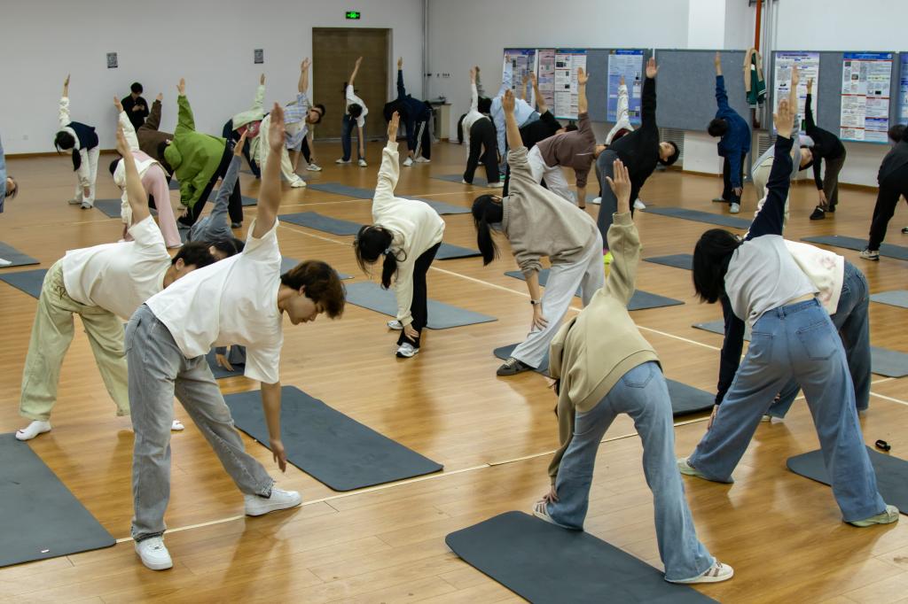 备赛期间,学院代表队全体成员以高度的集体荣誉感和严谨认真的态度投入训练。队员们相互鼓励、彼此帮扶,从单个动作的精准到位,到整体套路的行云流水;从音乐节奏的完美契合,到精神面貌的昂扬自信,每一处呈现都凝聚着无数汗水与心血。队员们在日复一日的训练中,不仅提升了瑜伽技艺,更锤炼了坚韧意志,凝聚起强大的团队向心力。