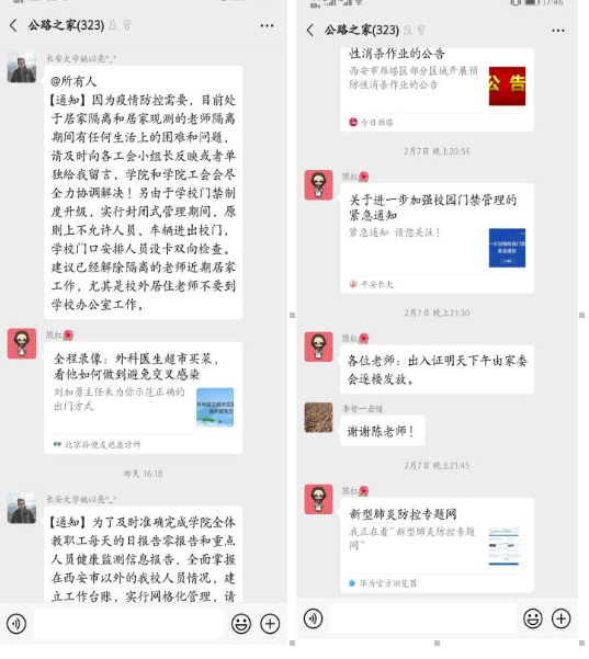 为遏制疫情的传播,做好居家隔离人员的思想工作,学院工会建立隔离人员微信交流群,推送疫情相关信息和疫情防控相关知识,进行心理疏导,鼓励大家互帮互助,共克时艰。同时积极组织志愿者服务团队,一对一帮助学院在家隔离教工解决日常生活必须品采购等问题,让居家隔离人员及其家人充分感受学院温暖,踏实安心在家隔离。